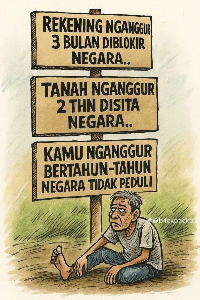 Ing sisih liya praktek urip mewah tur mubra-mubru dipitontonake dening pejabat. Aparat ora mbrastha kanthi serius kadurjanan korupsi sarta mbeslah dhuwit asile nyolong iku kanggo karaharjane kawula. Kosok baline, malah kawula cilik sing diplened. Diporoti pengasilane kanggo nambal kekurangane dhuwit negara. Nganti sumebar meme nylekit sing unine: “Rekening nganggur 3 bulan diblokir negara, tanah nganggur 2 tahun disita negara, kami nganggur bertahun-tahun negara tidak perduli.”
