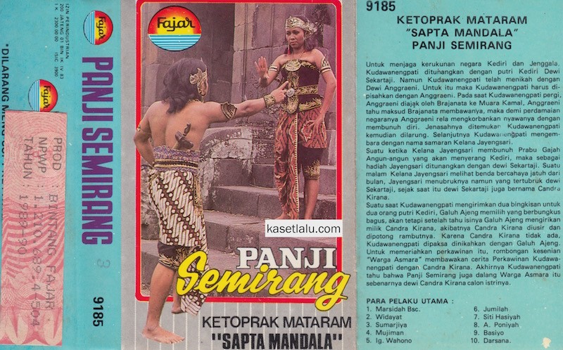 Kaset Kethoprak Sapta Mandala Yogyakarta kang ngangkat lakon Panji Semirang.