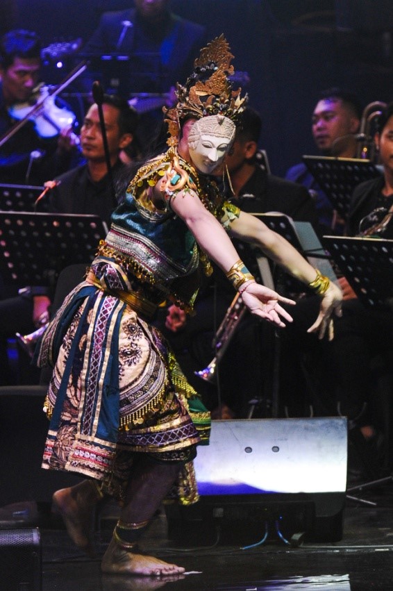 Joged seni topeng Panji Malangan kanthi iringan orkestra.