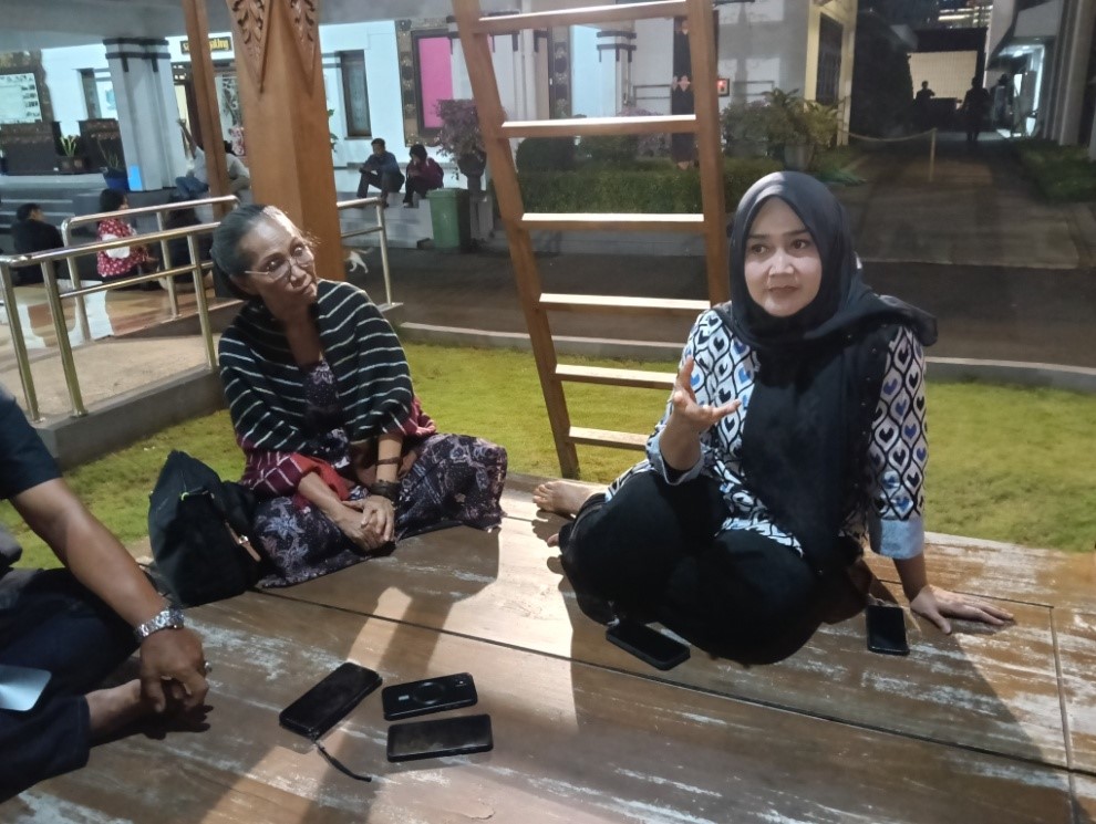 Kepala Dinas Kebudayaan dan Pariwisata Jatim Evy Afianasari (tengen) lan Elly D. Luthan nalika paring andharan. (Foto-foto KSW)