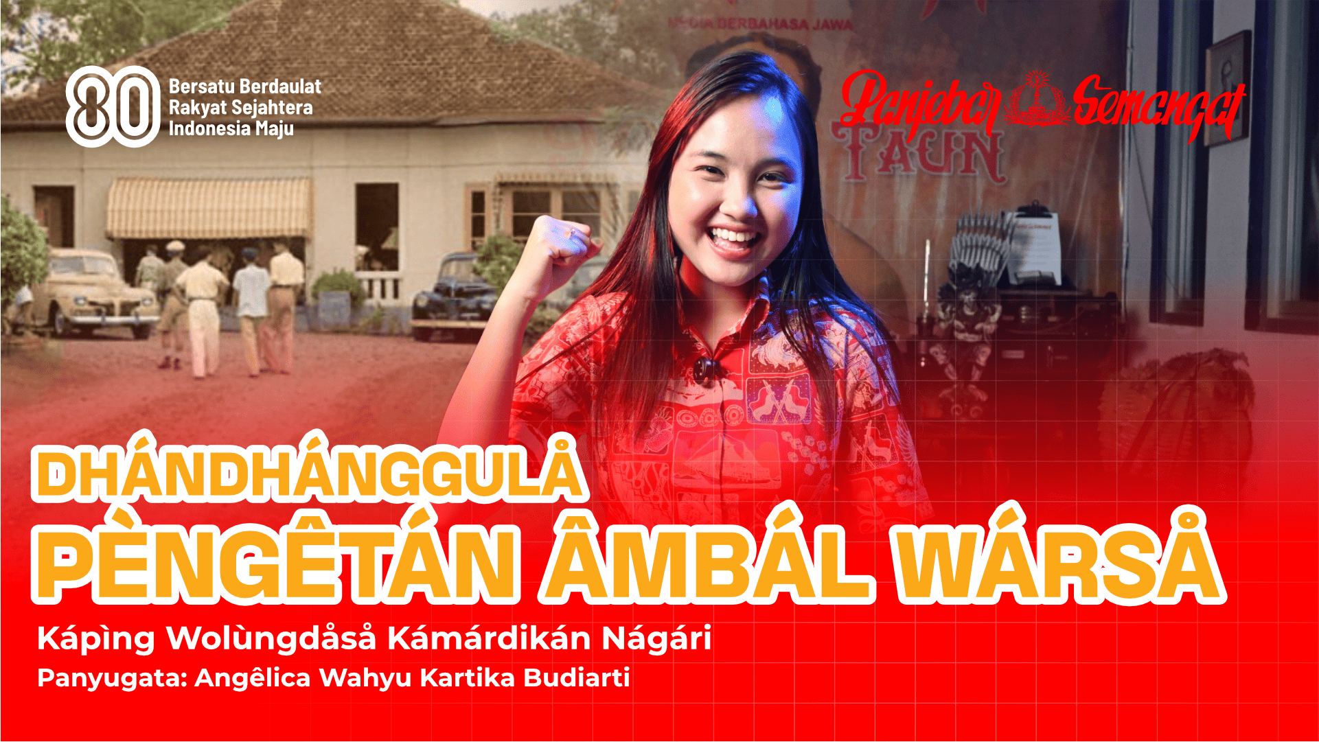Riptánipùn Sugêng Ádipitòyò Bagikan artikel ini Redaksi Panjebar Semangat Articles: 292 Previous Post Alaming Lelembut - DHEMIT PROYEK Next Post 92 Taun Panjebar Semangat - Asung Lelabuh srana Tembung, Anuturi Liwat Mangsi. Related Posts 92 Taun Panjebar Semangat – Asung Lelabuh srana Tembung, Anuturi Liwat Mangsi.23 September, 2025 Alaming Lelembut – DHEMIT PROYEK10 March, 2025 Alaming Lelembut – Semplah24 December, 2024 Leave a ReplyCancel ReplyYour email address will not be published. Required fields are marked * Name Email Website Add Comment * Save my name, email and website in this browser for the next time I comment.Post Comment