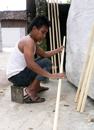 PANCEN, Mardiyono iki wis wiwit cilik taberi dadi pengrajin payung hias karo sanak kadange. “Pelanggan tetep payung hias asil karyaku saksedulur, yaiku pedagang payung saka pasar Beringharjo, Yogyakarta,” kandhane marang PS ing omahe karo nambahi, usaha minangka pengrajin payung hias iki wis ditekuni udakara 19 taun. Sakdurunge dheweke mung minangka buruh payung hias marang tanggane. Ing ndesane pancen akeh wong sing gawe payung, nanging sing miligi gawe payung hias mung sethithik, saiki malah suda.