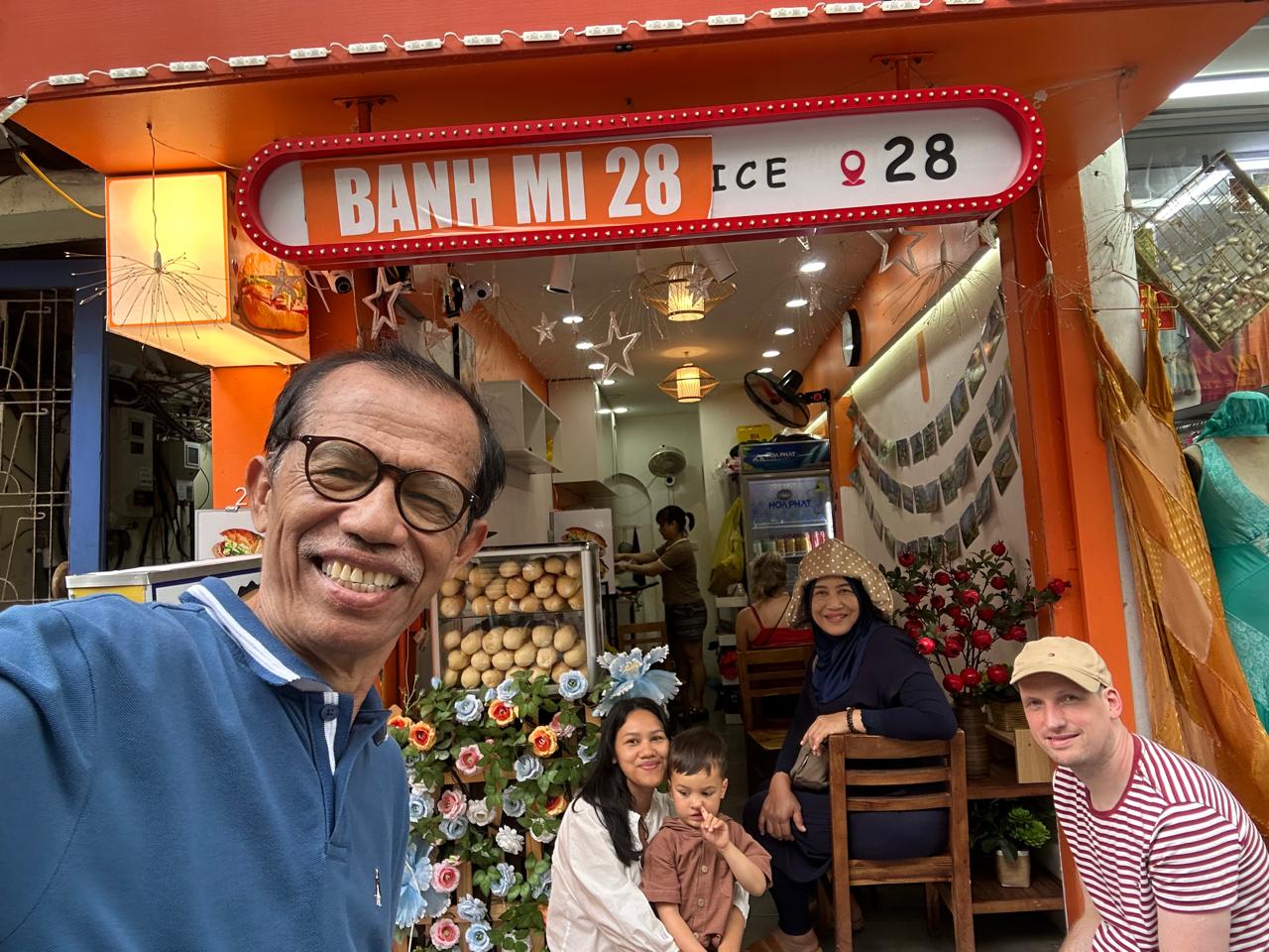 Ngepasi mangan awan aku sengaja golek panganan khas Vietnam kang karan Banh Mi. Supaya antuk restoran kang enak aku golek referensi saka Michelin maneh. Banh Mi iku kaya Sanwich. Wujude roti dawa (roti baguette). Tengahe roti sing disigar mau diseseli daging ayam, sapi (ana sing babi), acar, sayuran, lan saus Vietnam. Rasane enak, lan rotine renyah rasane. Dipangan dhong isih anget wuih nikmat banget rasane. Saestu.