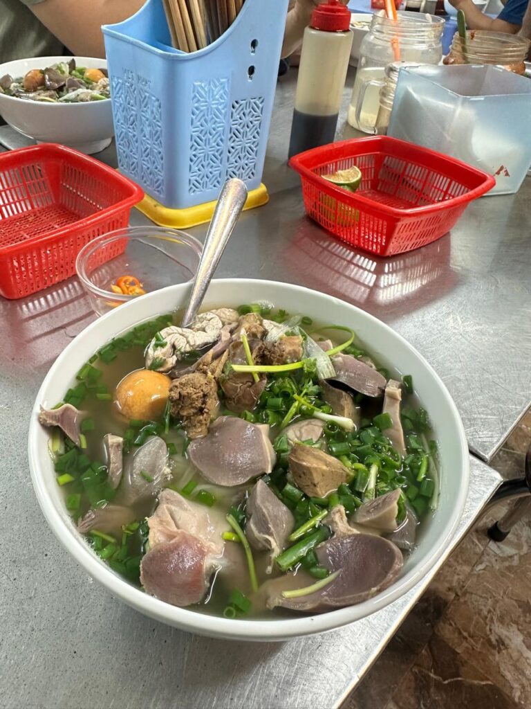 Mula aku banjur mutusake mangan menyang restoran Pho Ga Nguyet. Rehne cuacane isih grimis, mangan soup anget mesthi nyamleng. Amarga isih grimis lan kutha mentas ketrajang lesus mau, mula aku banjur numpak taksi online menyang restoran. Sejatine ora adoh, mlaku wae bisa. Nanging merga ngajak bocah cilik, yen nganti kudanan lan lara harak kojur.