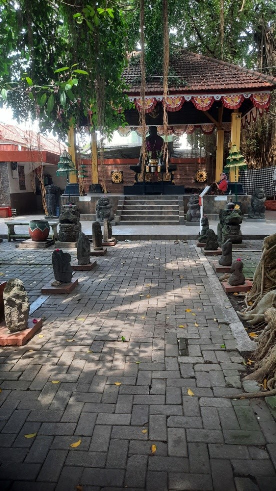 Nadyan mapan ana tangahing kutha Surabaya sing reja tur modern, ewasemono reca watu werna ireng gedhe njenggeleg kang pinageran wesi mubeng iku kuwi ora kelangan kesakralane. Saben dina, ora mawang esuk sore utawa awan bengi, ajeg ana wong mara kanthi maneka tujuwan. Akeh-akehe kepengin ngalap berkah.