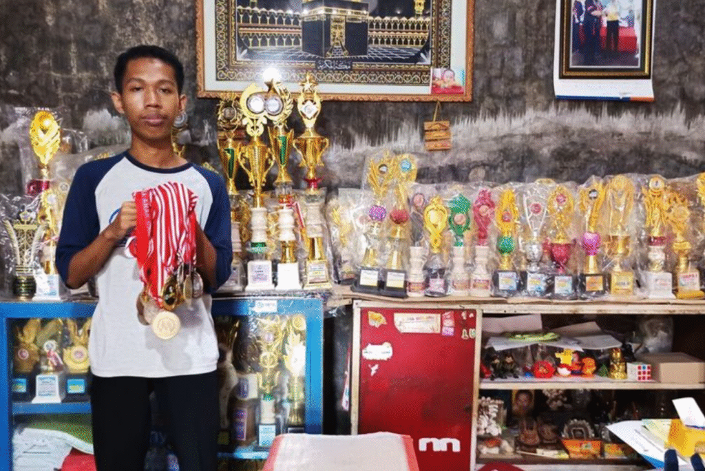 Lemari kayu prasaja kang pinapan ana ing ruwang tamu ukuran 3×4 m rinasa sumeseg awit anane maneka piala kang sumungsun temata. Omahe Avan Ferdiansyah Hilmi (19) ing Kelurahan Mangkujayan, Kecamatan Ponorogo, Kabupaten Ponorogo kinebakan watara satus piala kang kasil kaklumpukake wiwit TK pinuju SMA.
