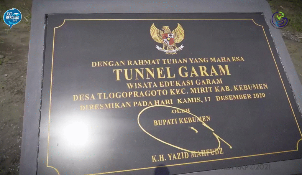 Tunnel Garam Wisata Edukasi Garam Desa Tlogopragoto. Kaya mengkono tulisan kang kapacak ing ngarep plataran kang ambane kurang luwih 200 meter x 70 meter, ing sak pinggire Jalur Pantai Selatan Jawa utawa Jalan Urut Sewu, ana ing tlatah Desa Tlogopragoto, Kecamatan Mirit, Kebumen, Jawa Tengah. Penulis mbacutake laku bablas mengulon kurang luwih 2 kilometer. Sakidule Jalan Urut Sewu, katon gapura kanti tulisan “Kampung Garam Selamat Datang”. Penulis banjur menggok mlebu tumuju Kampung Garam.