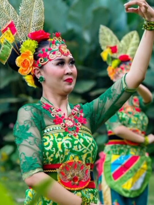 Busanane para penari kayadene busana khas Jember, kebaya lan sarung. Kreasine kebaya bisa direnggani kemben, sabuk, uga rerenggan liyane. Dene sarunge ora mithit ananging rada longgar amrih ngepenakake anggone solah beksa. Rambute digelung mendhuwur, lan diwenehi rerenggan gendera telu lan godhong tiron.