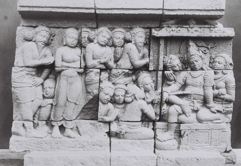 Yen ing petilasan lan papan pasujarahan ing dhuwur ngemot cerita wayang adhedhasar epos Mahabharata & Ramayana, Candhi Borobudhur duwe relief sing beda. Panil relief cerita Candhi Borobudur sing cacah 1460 jebul ngemot kisah Jataka. Yen nglacak sejarah dhasar lan sesanti bangsa, utamane semboyan Bhineka Tunggal Ika, inspirasi iku satemene njupuk saka Kakawin Sutasoma karya Mpu Tantular jaman Majapahit (1365 tekan 1489M). Cerita kekawin iki sumber asli asale saka Candhi Borobudhur.
